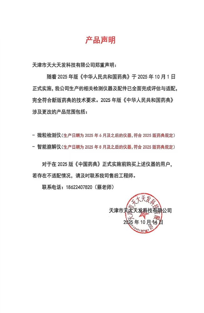 | 尊敬的各界朋友們: 歡迎您進(jìn)入天津市天大天發(fā)科技有限公司的網(wǎng)站進(jìn)行瀏覽,首先感謝各界朋友多年來(lái)對(duì)天大天發(fā)藥品檢測(cè)儀器和分析儀器的關(guān)心與支持! 天津市天大天發(fā)科技有限公司是通過(guò)ISO9001質(zhì)量管理體系認(rèn)證、ISO14001環(huán)境管理體系的認(rèn)證的高新技術(shù)企業(yè),是專(zhuān)業(yè)的藥檢儀器和分析儀器的制造廠商。 我們的產(chǎn)品包括藥品溶出儀系列、微粒檢測(cè)儀系列、內(nèi)毒素檢查儀系列等40余種產(chǎn)品,主要產(chǎn)品覆蓋了全國(guó)所有省區(qū),部分產(chǎn)品已進(jìn)入海外市場(chǎng)。公司在藥檢領(lǐng)域樹(shù)立了良好的品牌形象,贏得了廣大用戶(hù)的贊譽(yù)。 公司將更好地適應(yīng)瞬息萬(wàn)變的市場(chǎng),增強(qiáng)企業(yè)的核心競(jìng)爭(zhēng)力。抓住全球經(jīng)濟(jì)飛速發(fā)展的歷史性機(jī)遇,以創(chuàng)新精神進(jìn)行新的創(chuàng)業(yè)。以高起點(diǎn)、高速度、高效率創(chuàng)造出中國(guó)藥品檢測(cè)儀器和分析儀器領(lǐng)域中的品牌形象,立足中國(guó),走向國(guó)際。 我們熱切希望您成為天大天發(fā)科技有限公司的合作伙伴! |